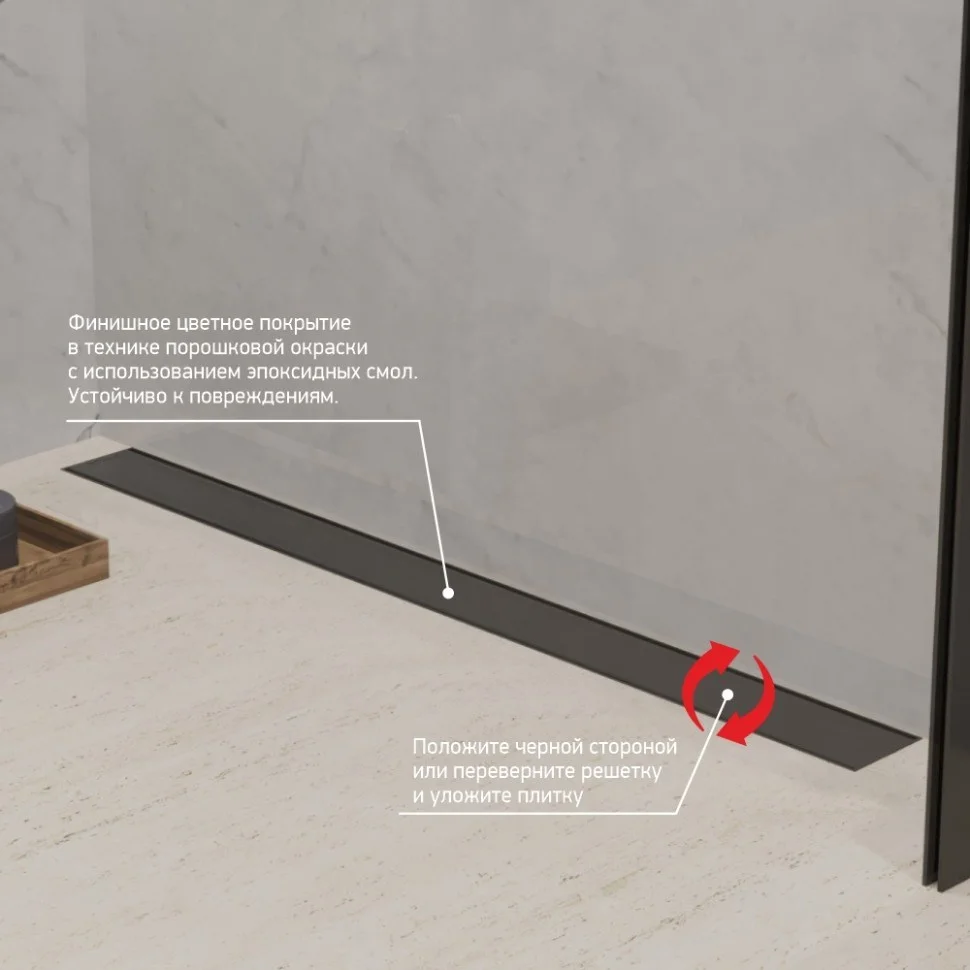 Душевой лоток Paini Klasik 650 мм D40, монтаж к стене, черный матовый CH650KC2