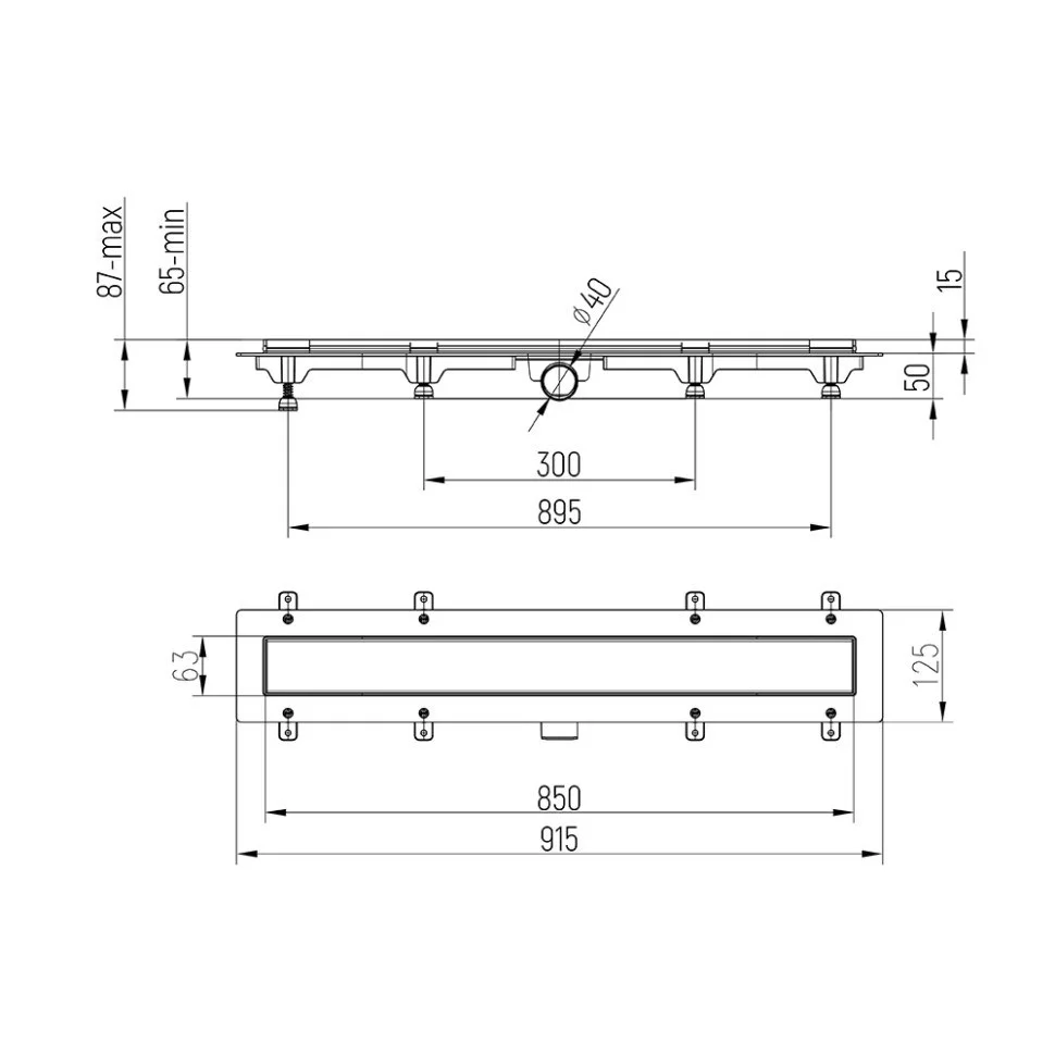 Душевой лоток Paini Klasik 850 мм D40, черный матовый CH850KC