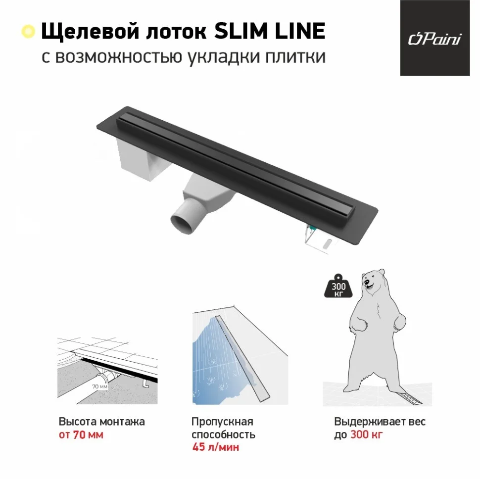 Душевой лоток Paini Slim Line 600 мм D50, черный матовый CH600SLC