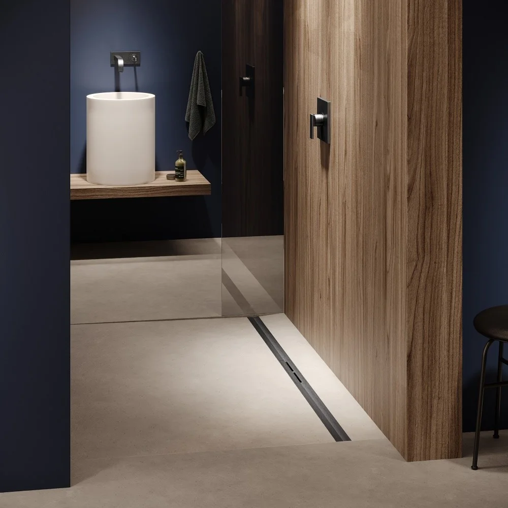 Дренажный канал TECE TECEdrainprofile ширина мм-55 длина мм-800 высота мм-51 монтаж-пристенный сифон-необходимо заказать материал-нержавеющая сталь цвет-сатин черный