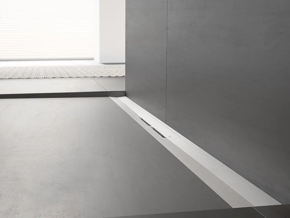 Дренажный канал TECE TECEdrainprofile ширина мм-55 длина мм-900 высота мм-51 монтаж-пристенный сифон-необходимо заказать материал-нержавеющая сталь цвет-хром черный глянцевый PVD