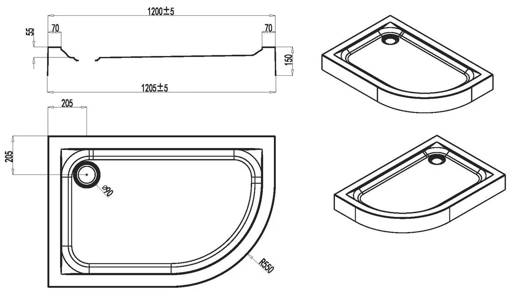 Душевой поддон AM.PM Bliss L W53T-302L120W для душевого уголка, левый, 120x80, белый акрил