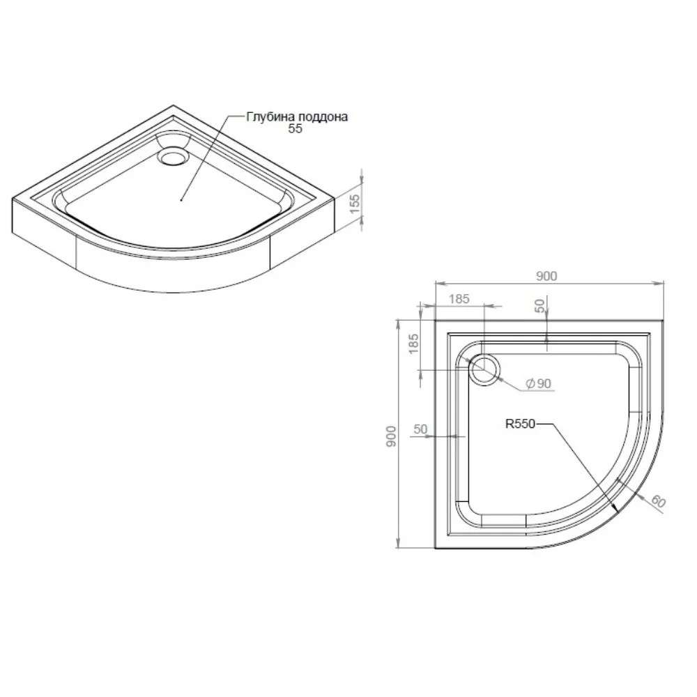 Усиленный поддон на регулируемых по высоте ножках обладает химической инертностью к большинству чистящих средств и дарит безупречный цвет и приятные тактильные ощущения. ""