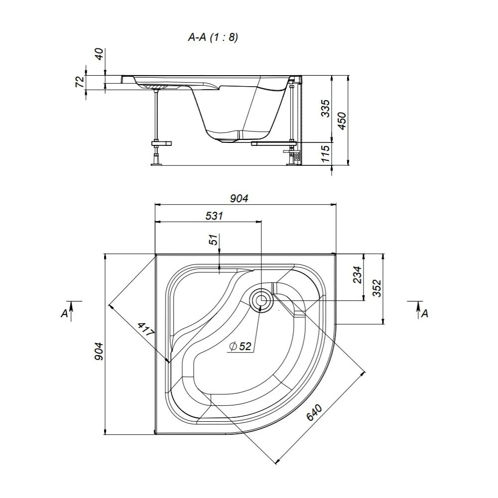 Усиленный акриловый поддон на регулируемых по высоте ножках обладает химической инертностью к большинству чистящих средств и дарит безупречный белый цвет и приятные тактильные ощущения. ""
