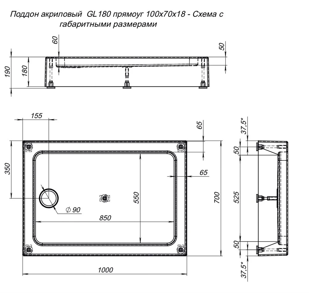 Купить Душевые поддоны производства Aquanet (Россия), коллекция GL180, код товара: 215360 можно выгодно в Сантемо.ру: