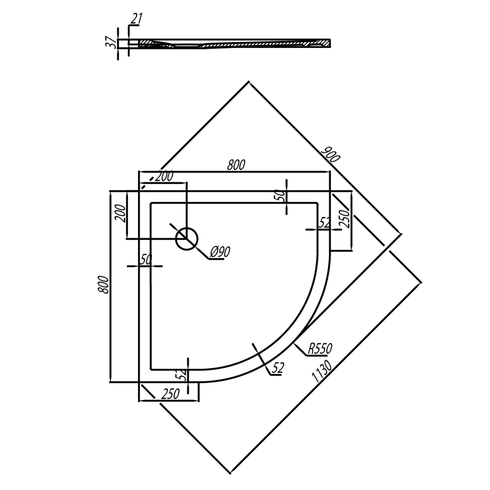 Поддон из прочного экологичного материала в современном дизайне. Небольшая глубина поддона для удобного входа людей всех возрастов. Отличные противоскользящие свойства.