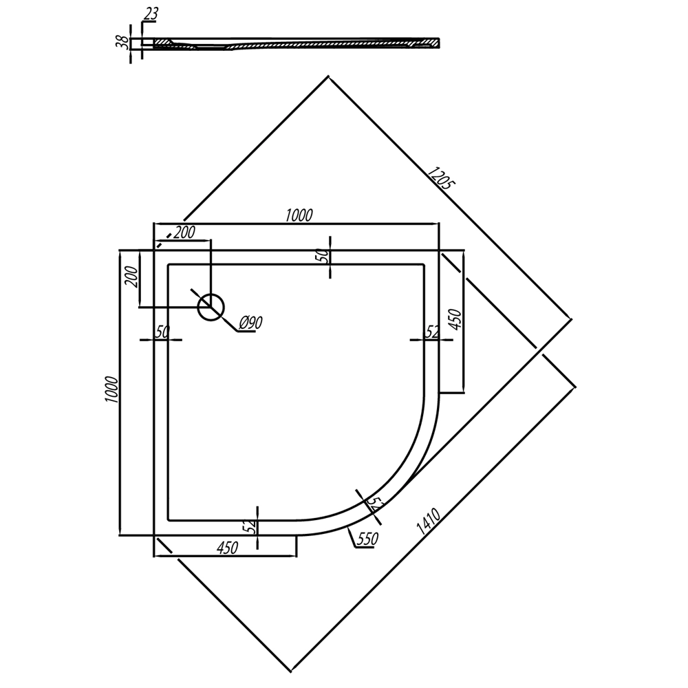 Поддон из прочного экологичного материала в современном дизайне. Небольшая глубина поддона для удобного входа людей всех возрастов. Отличные противоскользящие свойства.