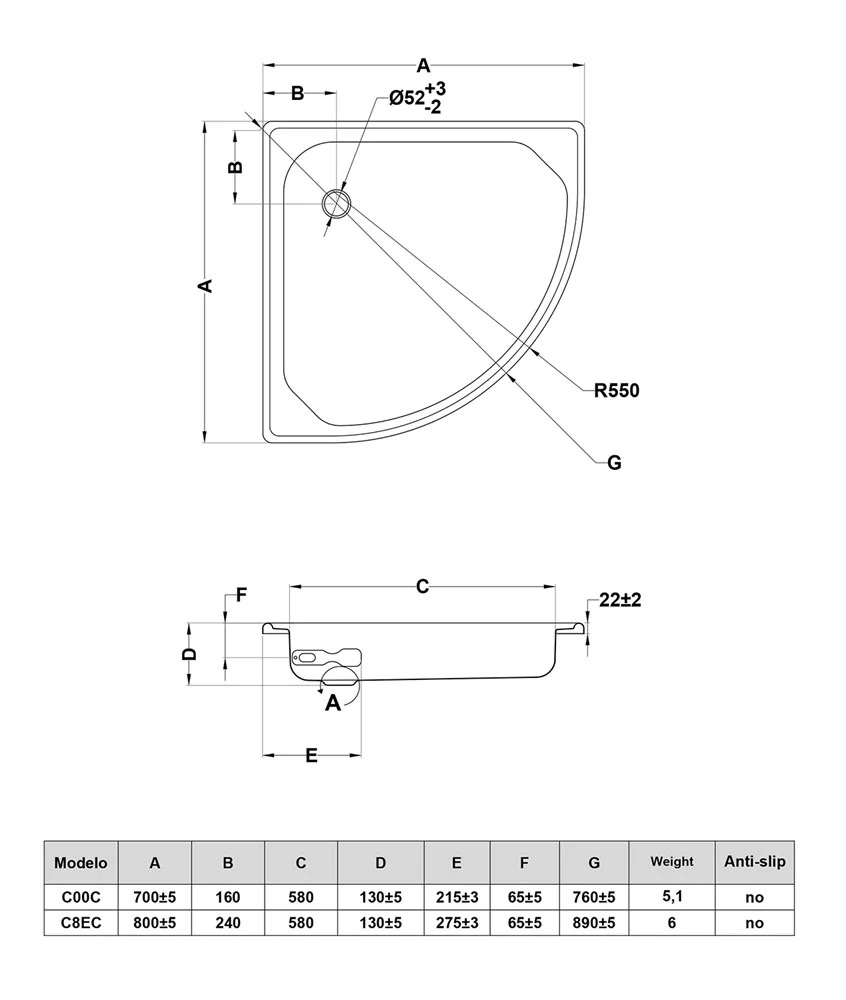 Душевой поддон BLB C00C 70х70 стальной полукруглый