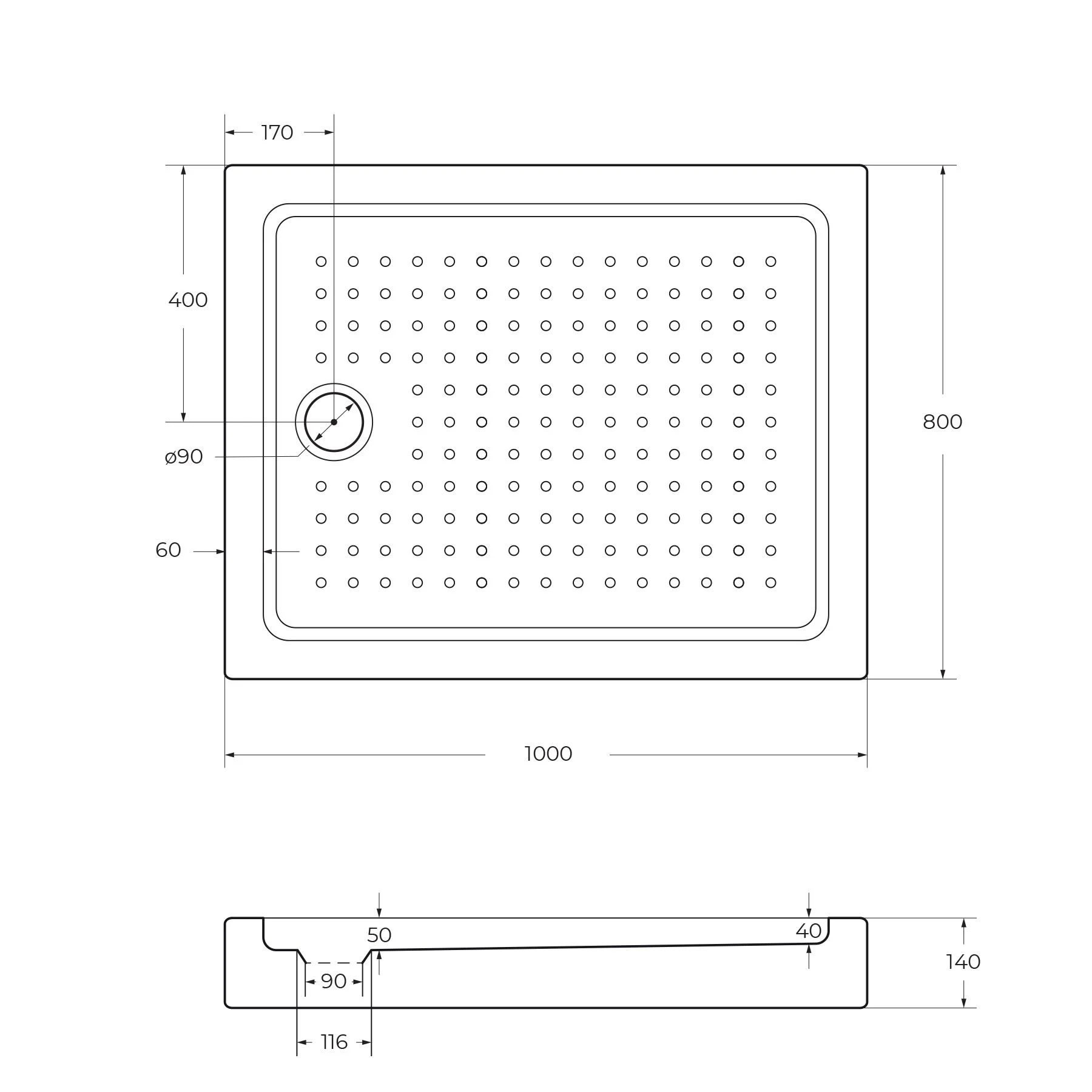 Душевой поддон CEZARES TRAY-A-AH-100/80-15-W 1000x800 акрил, белый