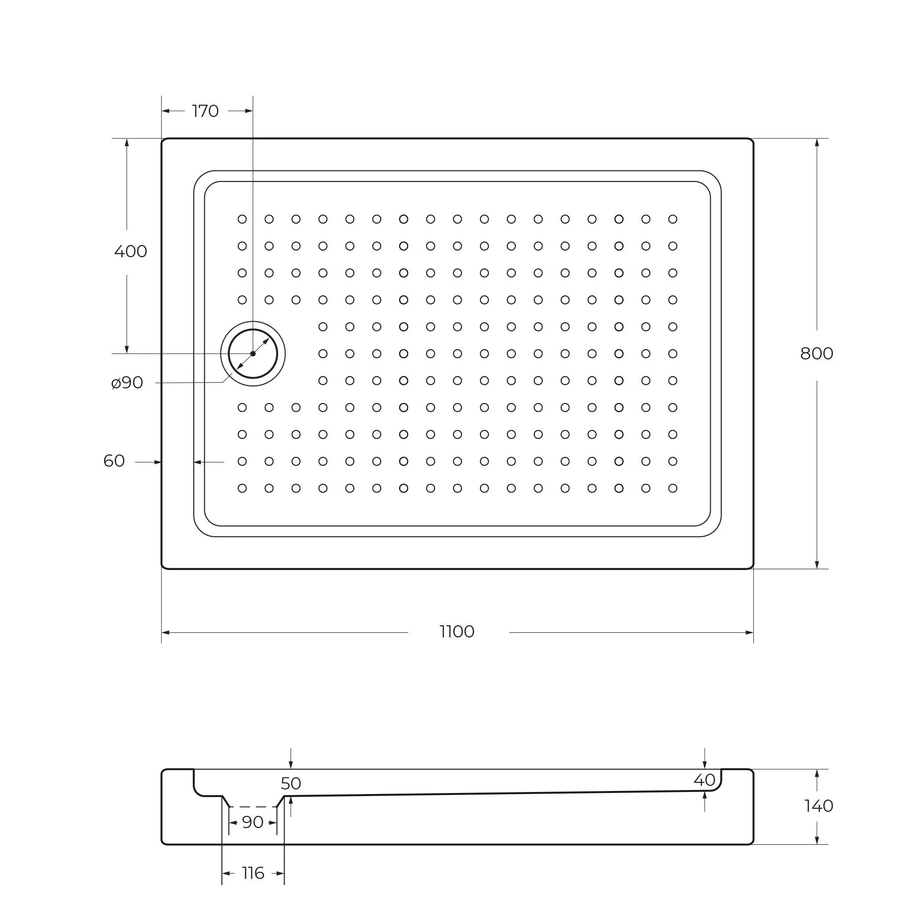 Душевой поддон CEZARES TRAY-A-AH-110/100-15-W 1100x800 акрил, белый