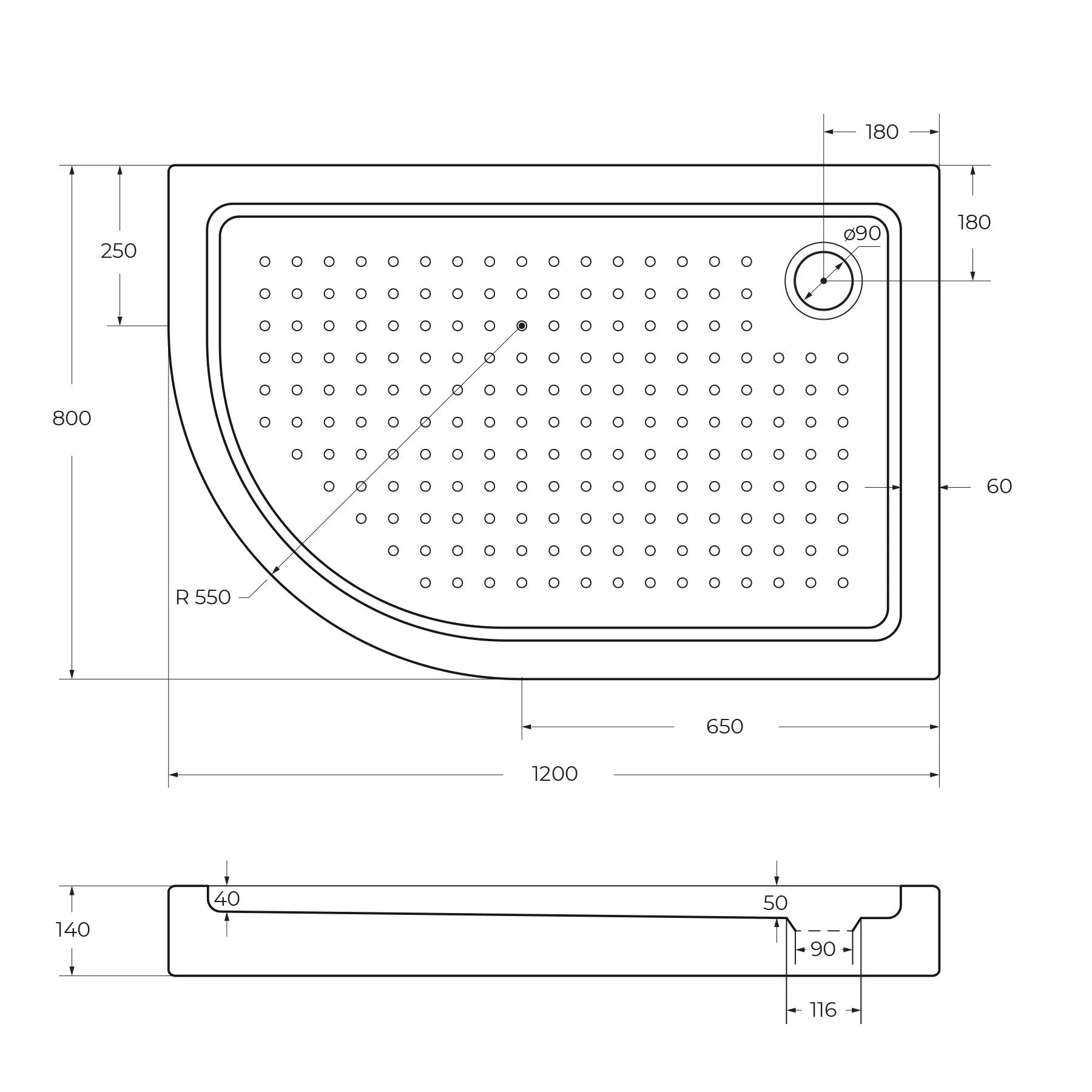 Душевой поддон CEZARES TRAY-A-RH-120/80-550-15-W-R 1200x800 акрил, белый