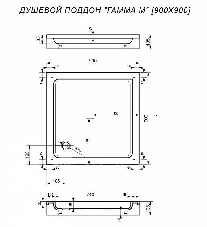 Душевой поддон Эстет Гамма М 900х900 ФР-00000755