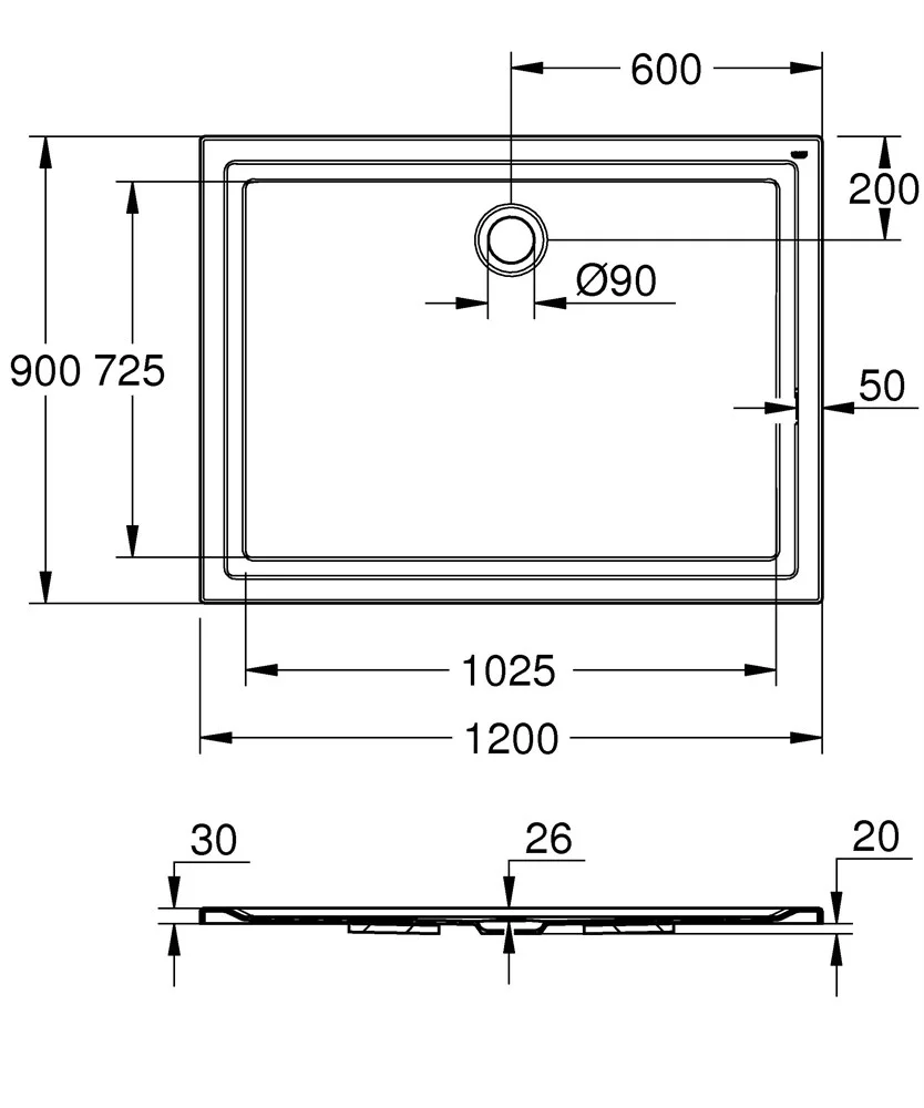 Душевой поддон GROHE 1200х900, универсальный, белый (39308000)