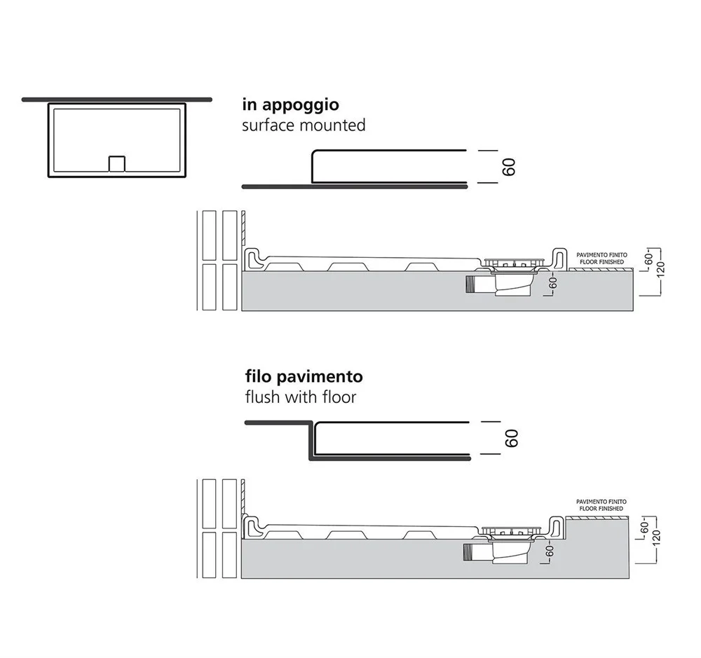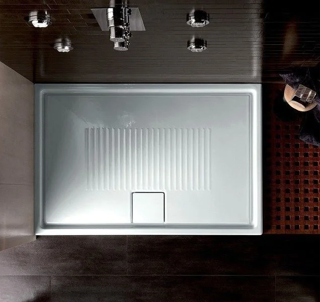 Hatria Lif.ST YXMK01: Керамический душевой поддон, универсальный тип монтажа - накладной (сверху пола) или встраиваемый (утапливаемый) в пол, диаметр сливного отверстия 90 мм. Сифон с крышкой Y1D5 (Белая крышка) Y1FG (Хромированная крышка) в комплект поставки не входит и приобретается отдельно.