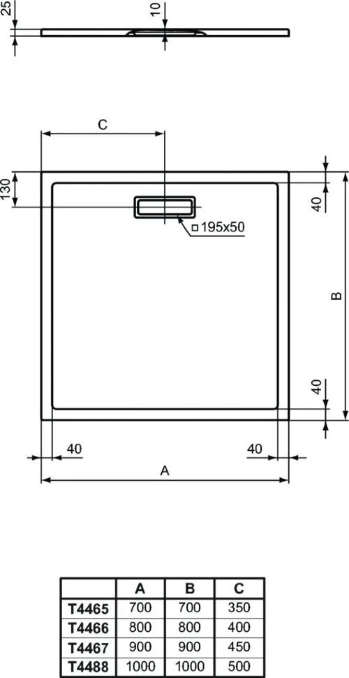 ULTRAFLAT NEW Ультратонкий акриловый квадратный душевой поддон 900x900x25 мм. Для напольной или встраиваемой установки. Сифон с декоративной прямоугольной хромированной крышкой (T4493AA) заказывается дополнительно