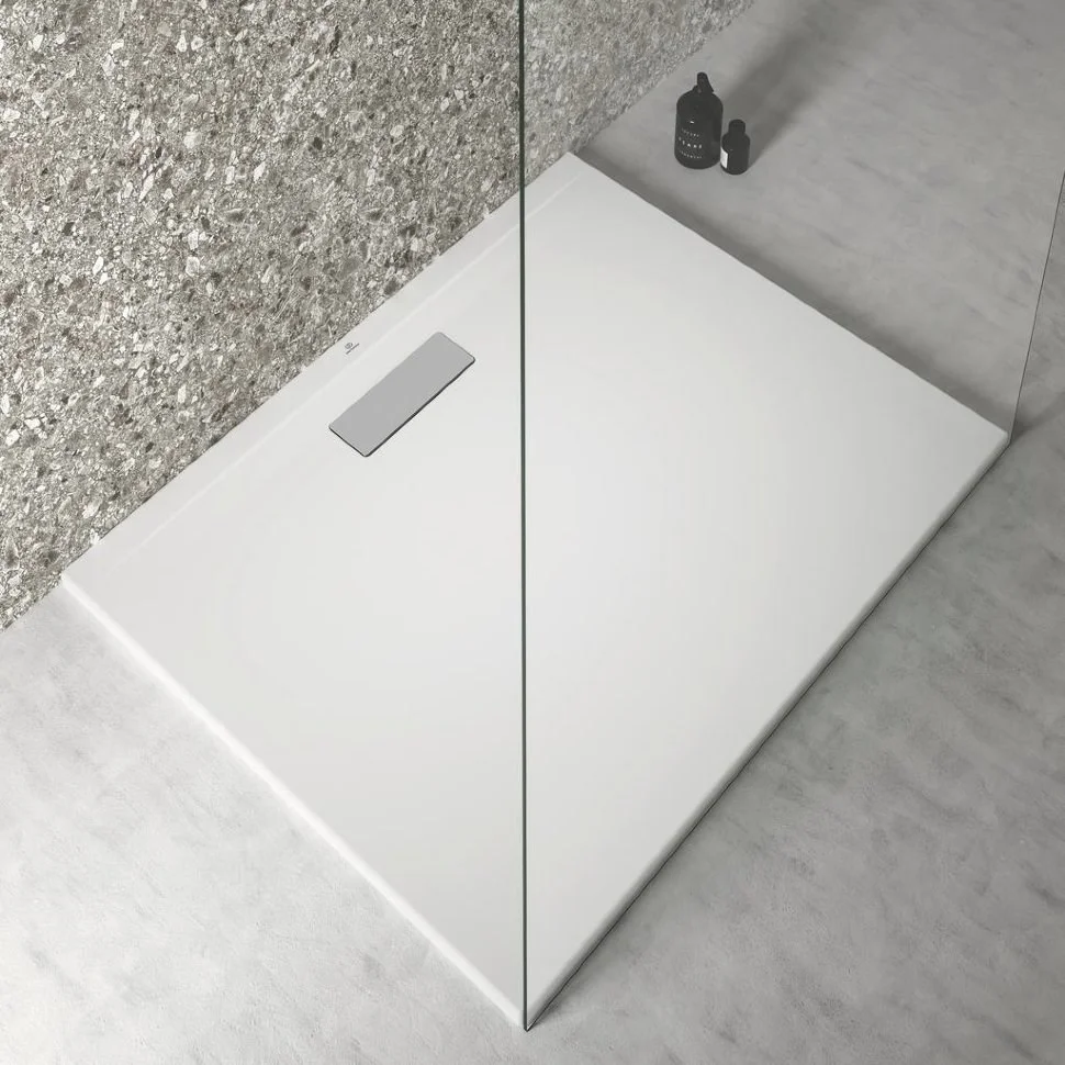 ULTRAFLAT NEW Ультратонкий акриловый прямоугольный душевой поддон 1000x800x25 мм. Для напольной или встраиваемой установки. Сифон с декоративной прямоугольной хромированной крышкой (T4493AA) заказывается дополнительно