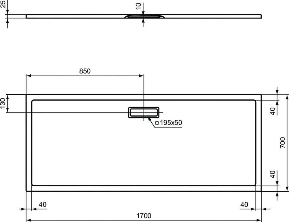 ULTRAFLAT NEW Ультратонкий акриловый прямоугольный душевой поддон 1700x700x25 мм. Для напольной или встраиваемой установки. Сифон с декоративной прямоугольной хромированной крышкой (T4493AA) заказывается дополнительно