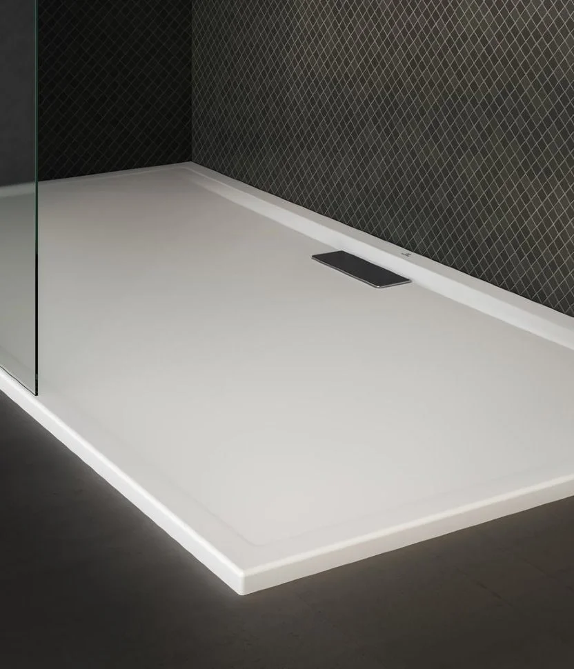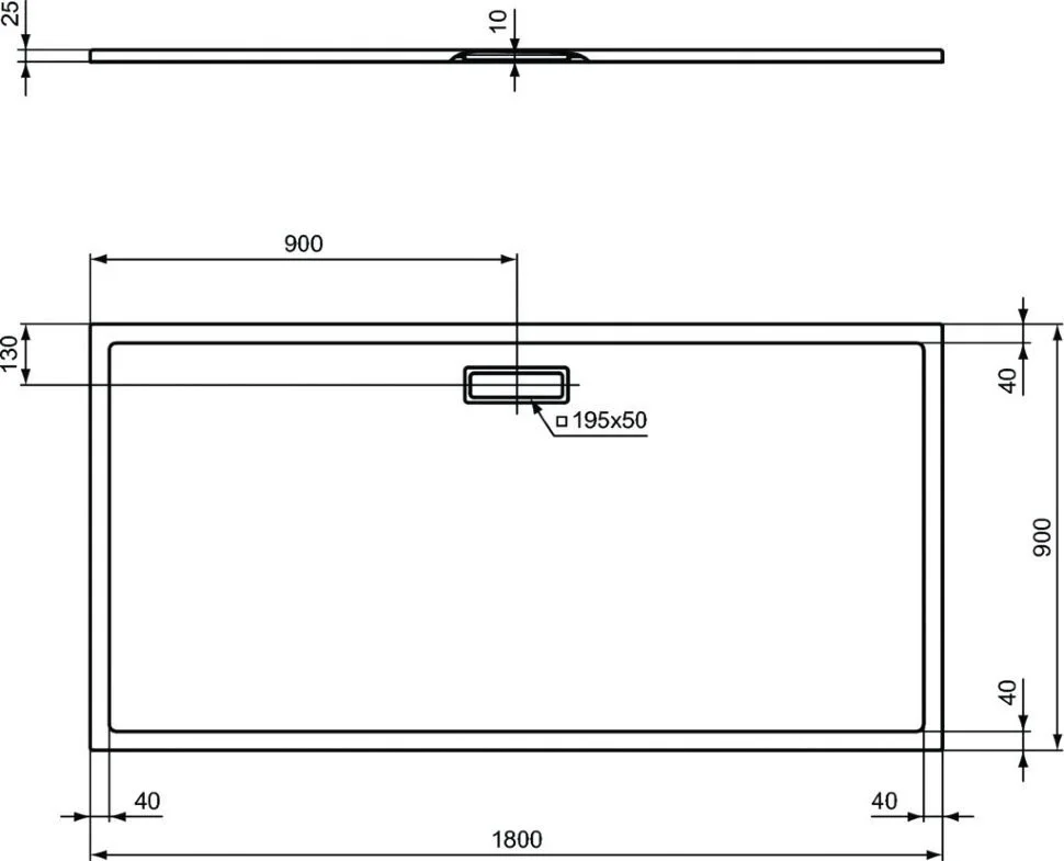 ULTRAFLAT NEW Ультратонкий акриловый прямоугольный душевой поддон 1800x900x25 мм. Для напольной или встраиваемой установки. Сифон с декоративной прямоугольной хромированной крышкой (T4493AA) заказывается дополнительно