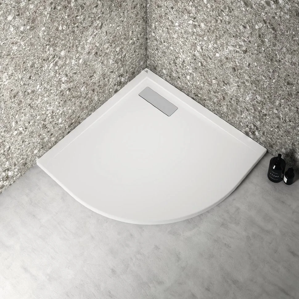 ULTRAFLAT NEW Ультратонкий акриловый сегментный душевой поддон 800x800x25 мм. Для напольной или встраиваемой установки. Сифон с декоративной прямоугольной хромированной крышкой (T4493AA) заказывается дополнительно