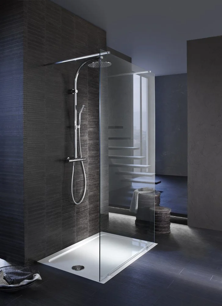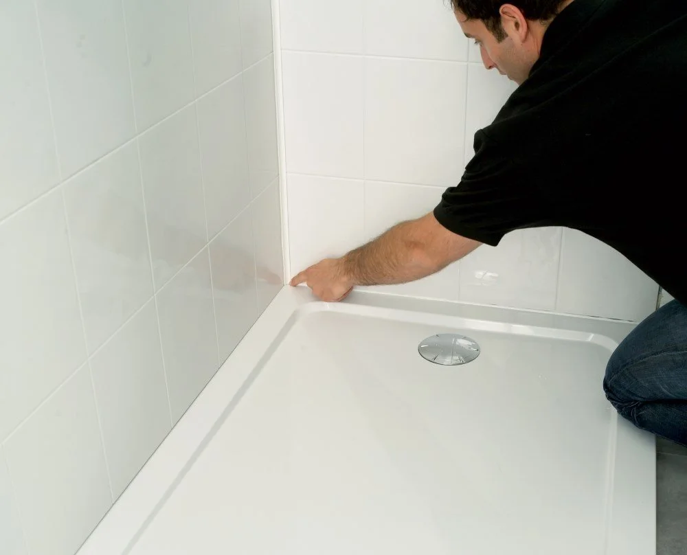 Акриловый душевой поддон, укрепленный искусственным камнем.
