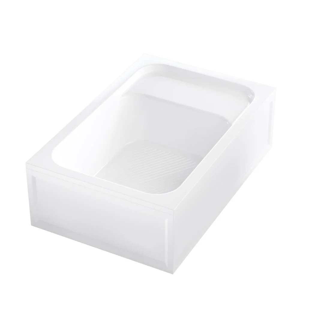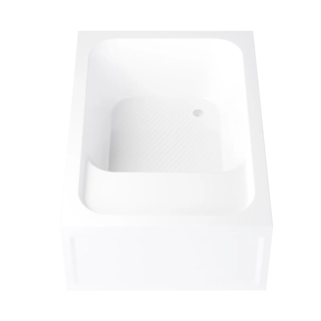 Этот акриловый душевой поддон изготовлен из высокопрочного сантехнического акрила АБС (акрилонитрил-бутадиен-стирол) и ПММА (полиметилметакрилат) толщиной 3 мм, методом вакуумного формирования. Конструкция поддона дополнительно усиливается с внешней стороны методом напыления стеклопластика и закладным элементом из ДСП (дюропластической древесно-стружечной плиты) толщиной 16 мм, что обеспечивает долгий срок службы поддона не менее 15 лет.