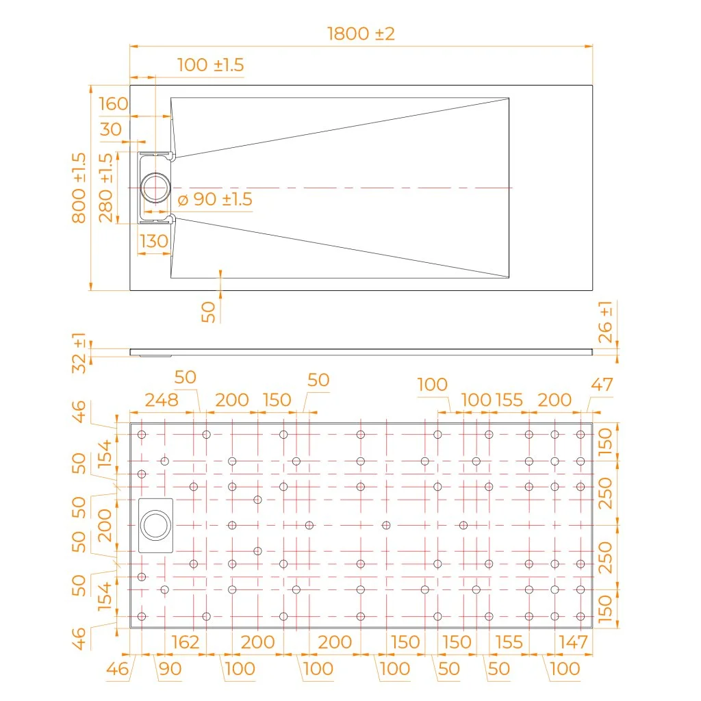 Общая высота поддона: 26 мм.;