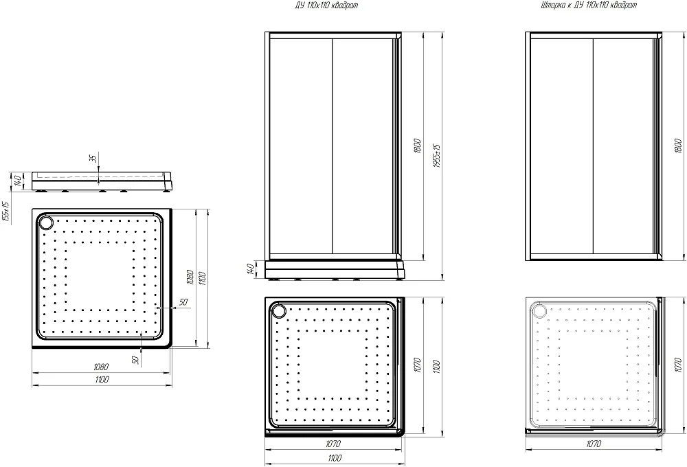 Душевой поддон Radomir Дрим 110 1-11-0-0-0-120 квадратный с каркасом и сифоном