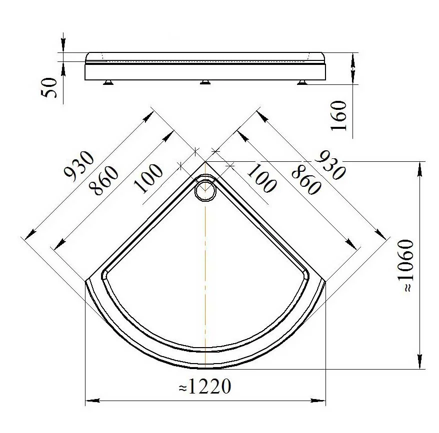 Душевой поддон Radomir Найт 90 1-11-0-0-0-001 радиальный с каркасом и сифоном