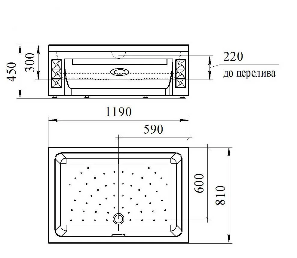 Душевой поддон Radomir Верчелли 1-11-0-2-0-013 правый с каркасом и сифоном, торцевая панель