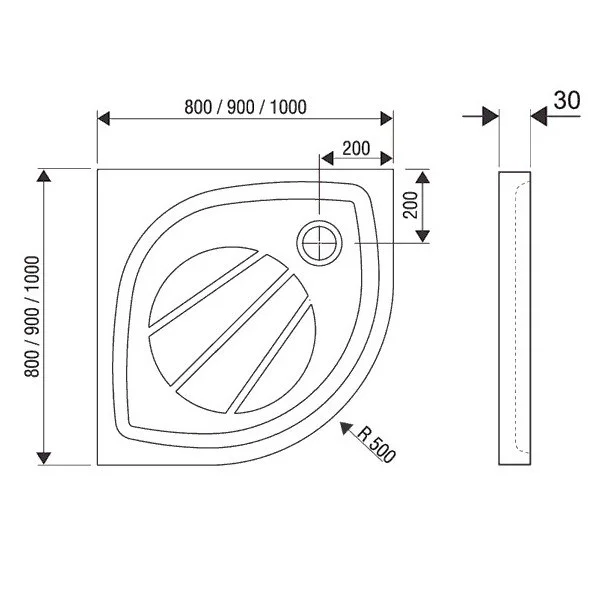 Размер: 900х900х95/135мм. Полукруглый душевой поддон Elipso Pro.