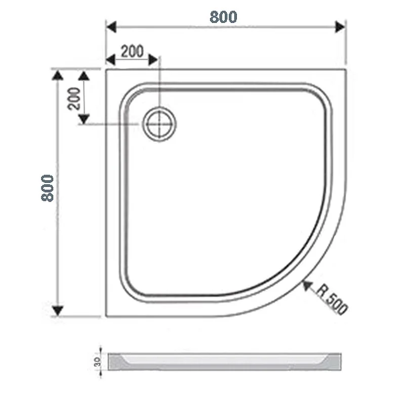 Размер: 800х800х30мм. Полукруглый душевой поддон Elipso Pro Chrome.