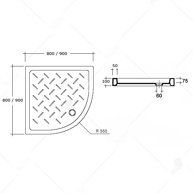 Душевой поддон RGW CER CR/R 800x800 мм 19170488-01 полукруглый белый