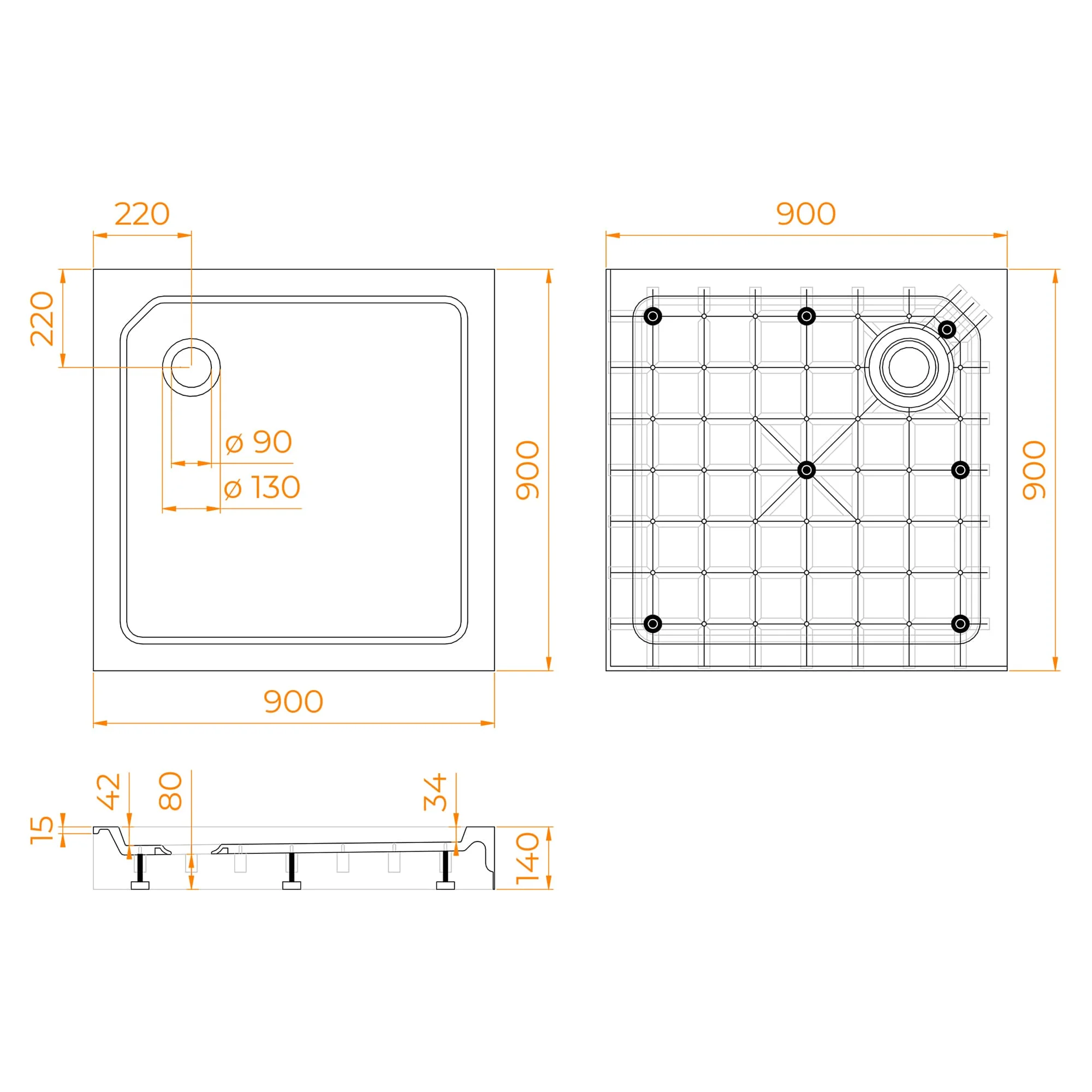 Поддоны оснащены литыми экранами, что позволит скрыть сливную систему, а наличие в комплекте ножек с регулировкой высоты, позволит быстро и легко установить поддон и начать его использовать.