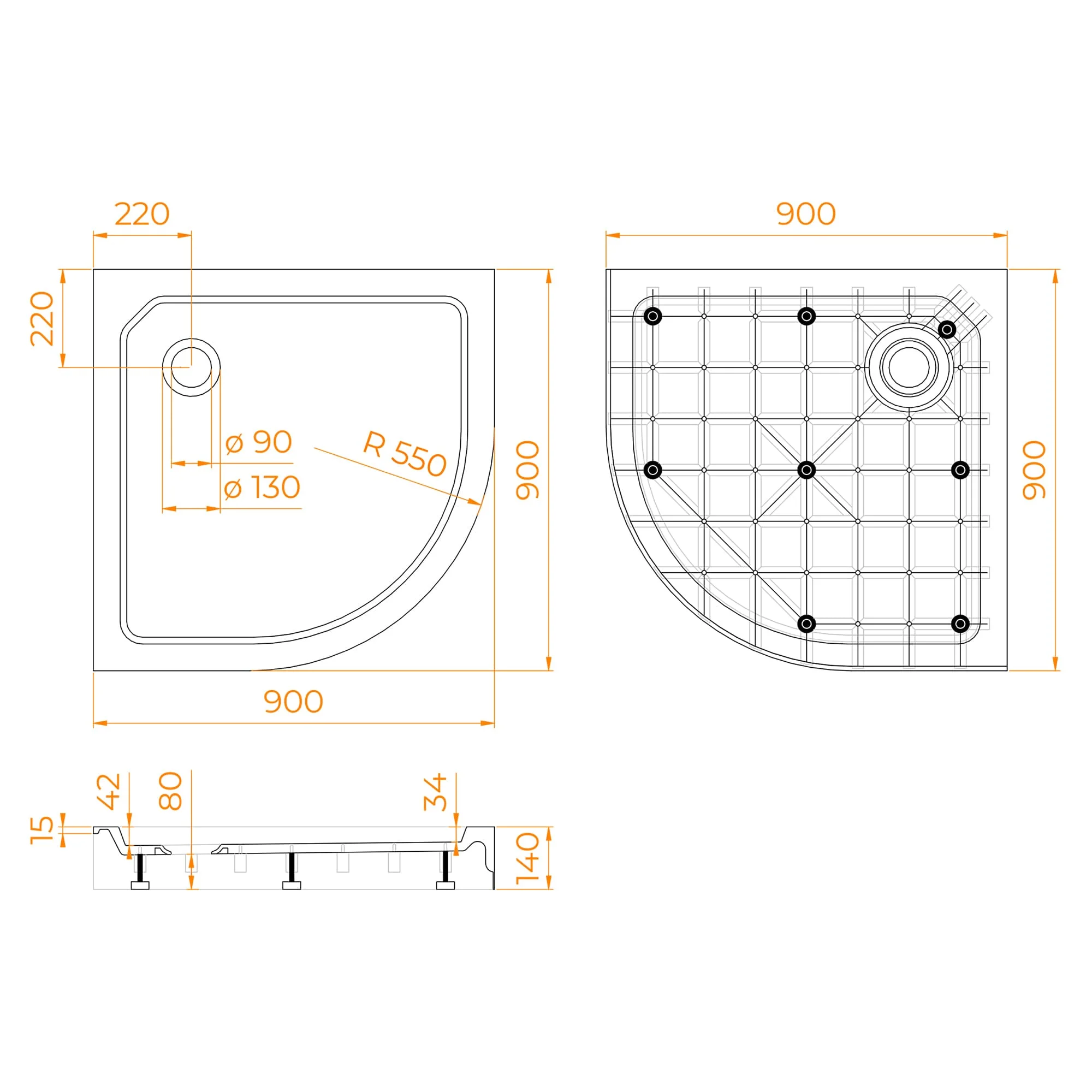 Душевой поддон из материала SMC, с ножками, без сливного отверстия. Поддоны SMC упакованы как на фото. Ножки упакованы в пакет, вложены и закреплены в картонные коробки поддонов.