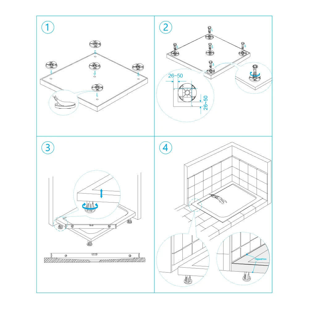 По вашему желанию можем установить поддон на ножки:Поддоны длинной до 1100 мм включительно комплект RGW NG-01 (08)Поддоны длинной от 1200 мм включительно комплект RGW NG-01 (10)