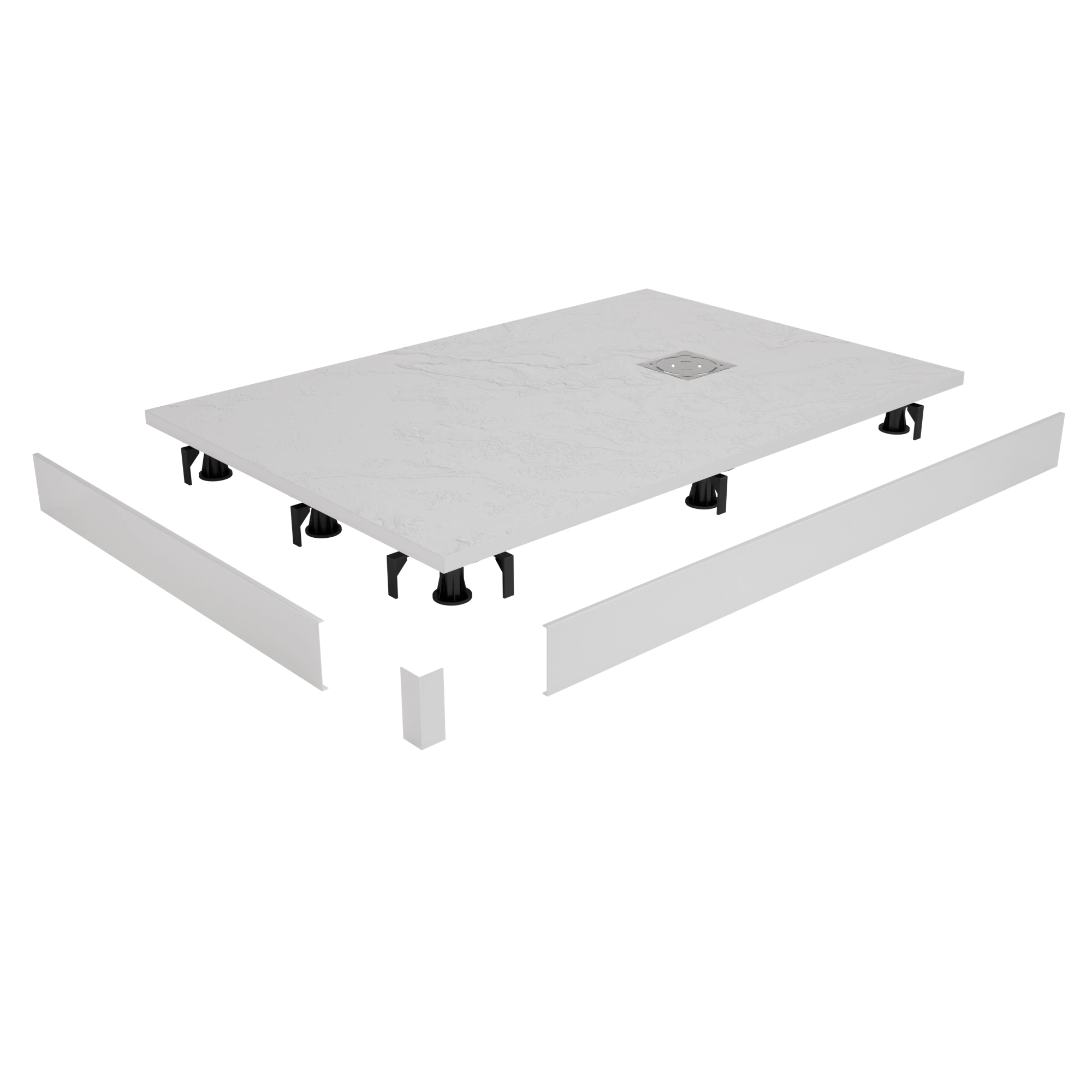 Душевые поддоны из искусственного камня, обладают высокой прочностью и долговечностью. Материал поддона позволяет резку по индивидуальным размерам. Поверхность поддонов рельефная, антискользящая. Нагрузка на поддон до 300 кг.