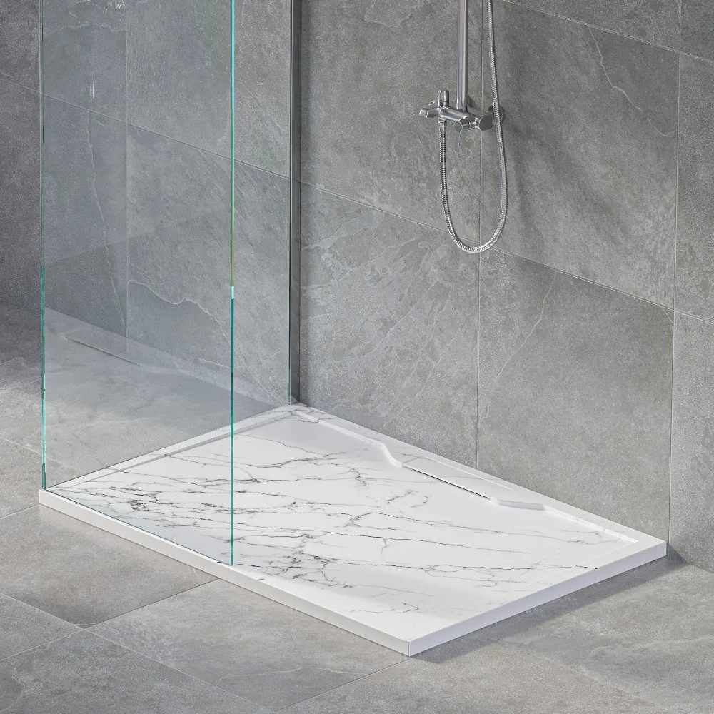 В серии душевых поддонов Stone Tray новинка - поддон в самом актуальном дизайне под натуральный белый мрамор.