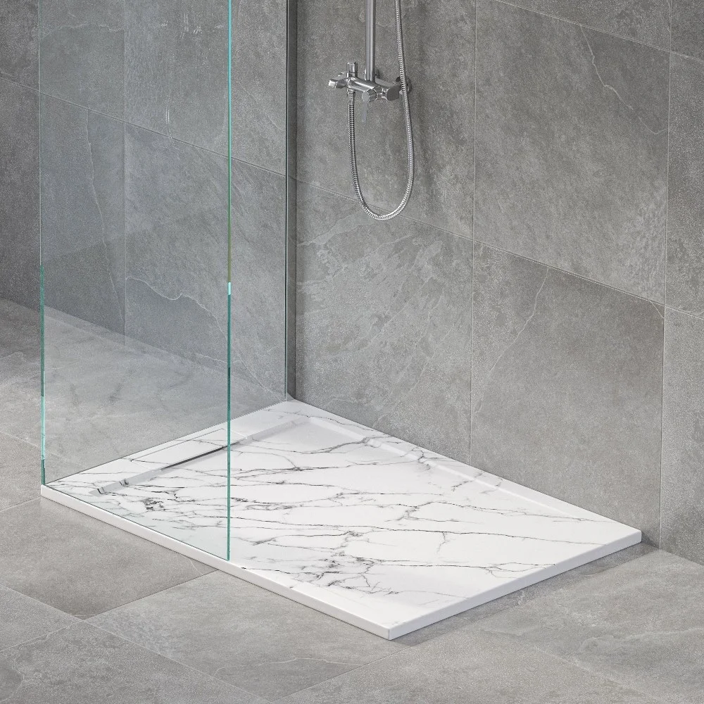 В серии душевых поддонов Stone Tray новинка - поддон в самом актуальном дизайне под натуральный белый мрамор.