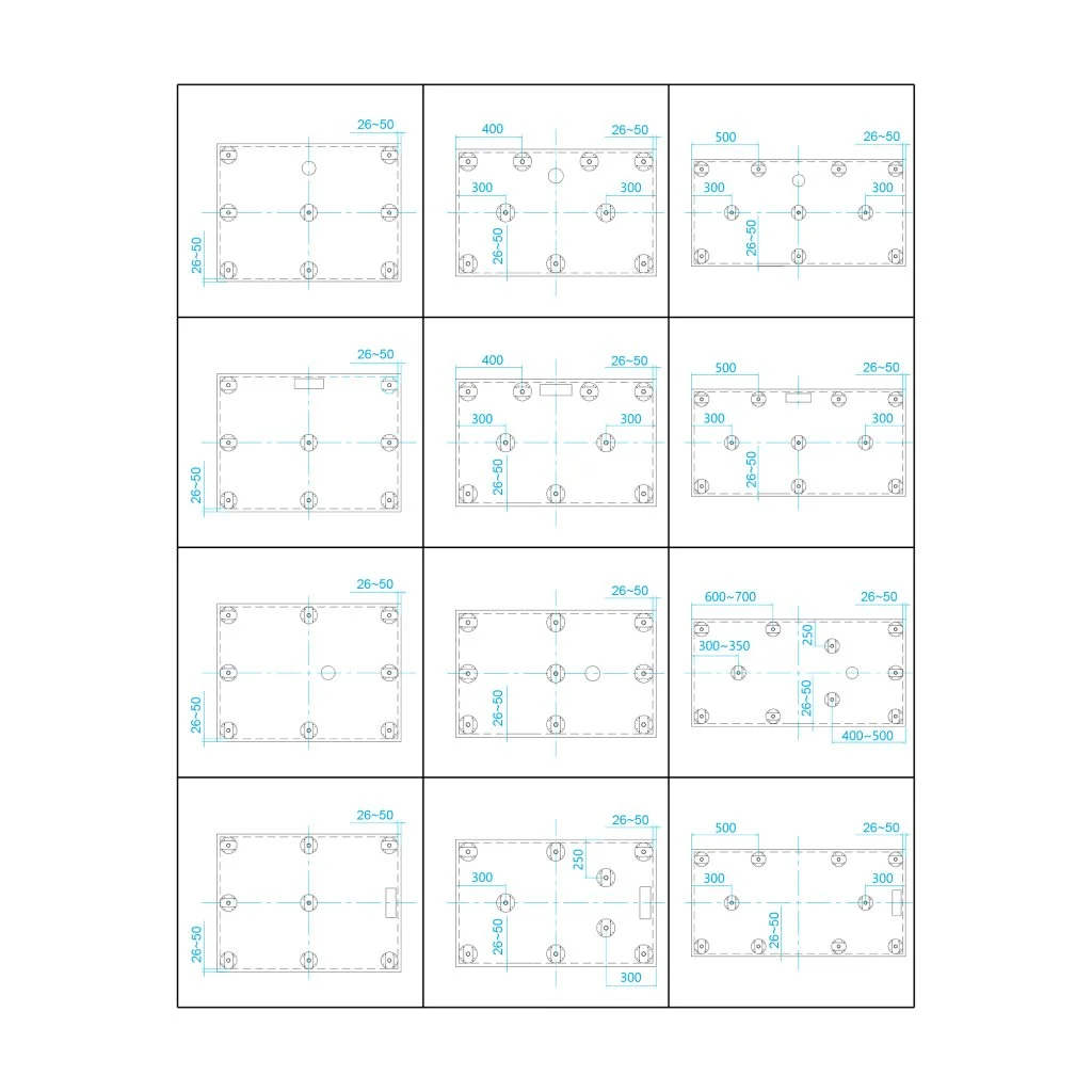Обратите внимание: фактические размеры с учетом заполнения швов могут меняться в пределах -8/+2 мм.