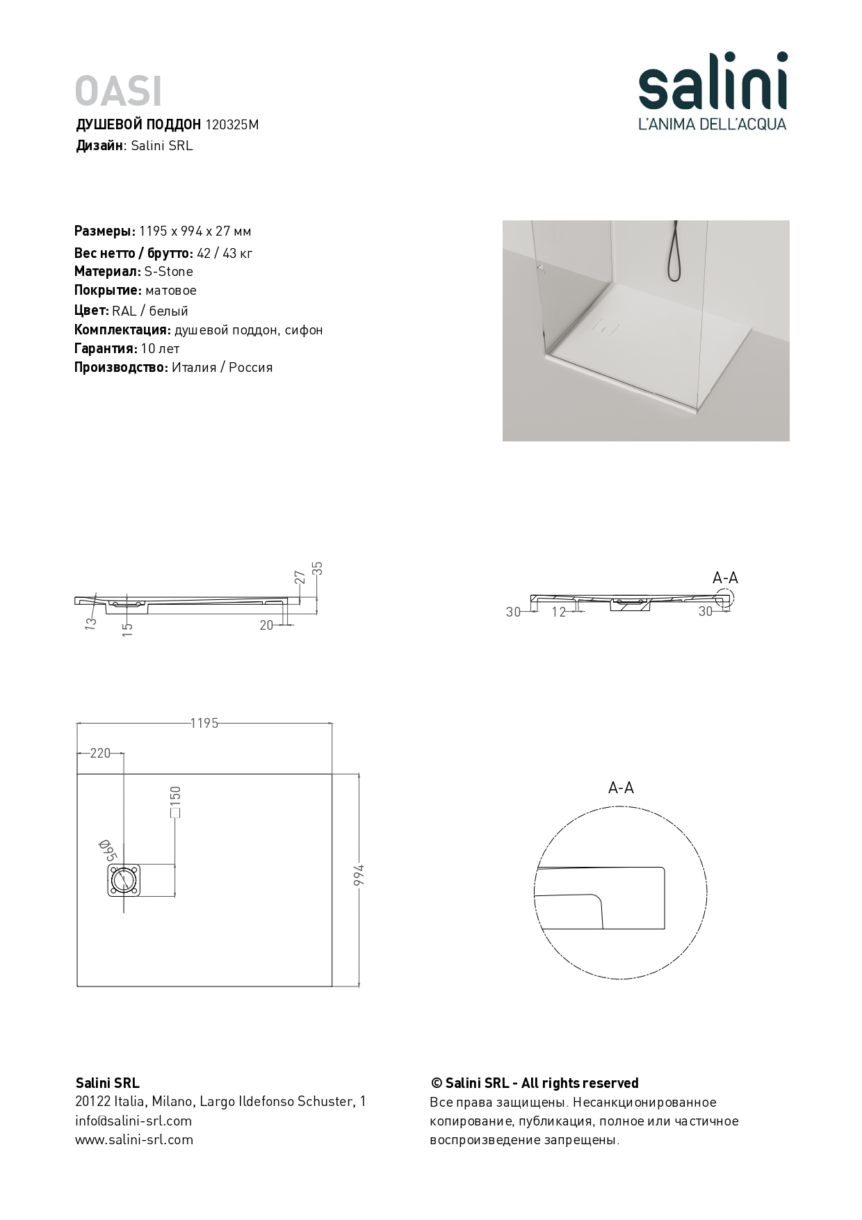 На изображениях душевой поддон представлен в RAL Classic 7006, RAL Classic 9011 и в классическом белом цвете.