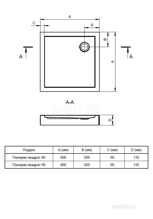 Купить Душевые поддоны производства SANTEK (Россия), коллекция Палермо, код товара: 262070 можно выгодно в Сантемо.ру: