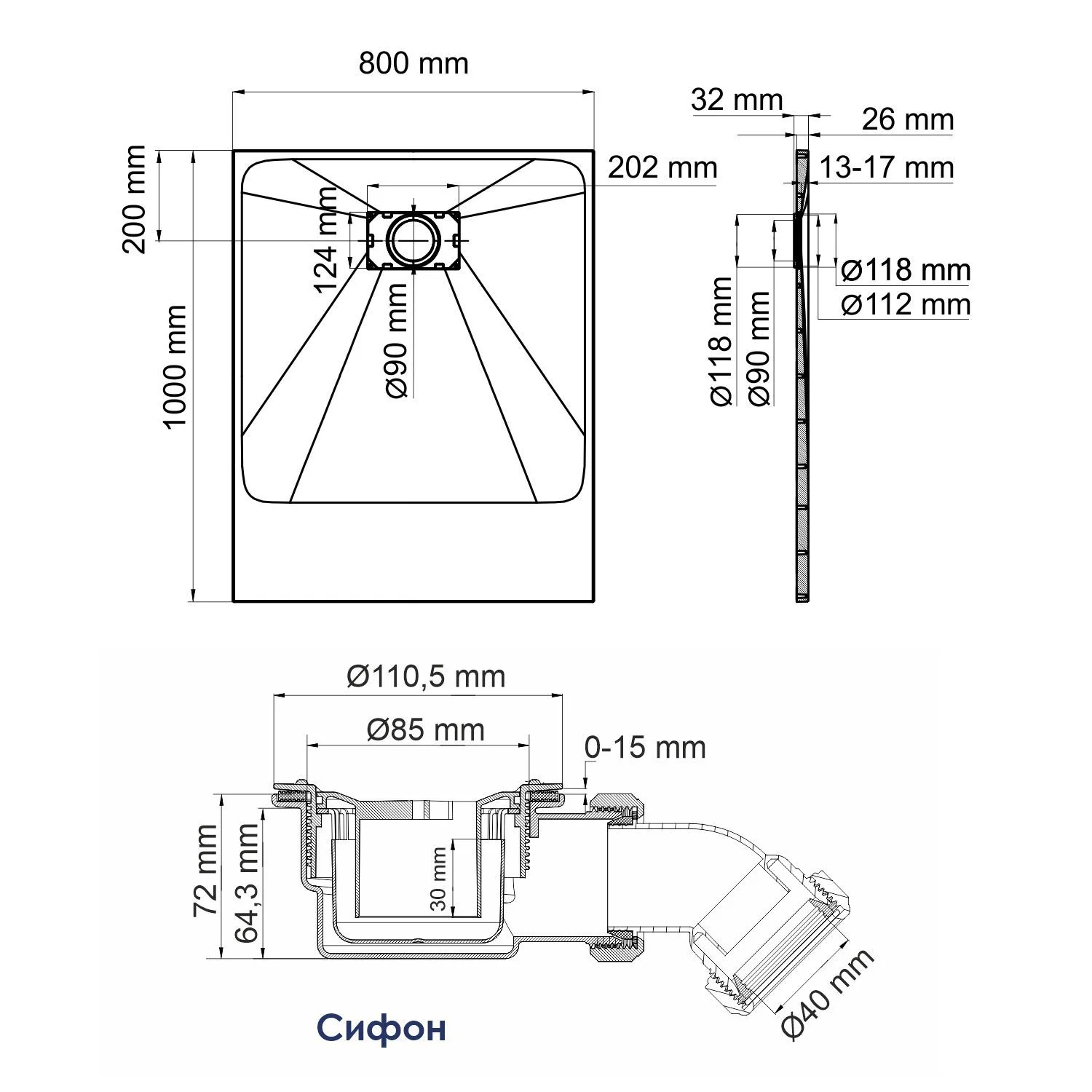 Диаметр слива канализации, мм