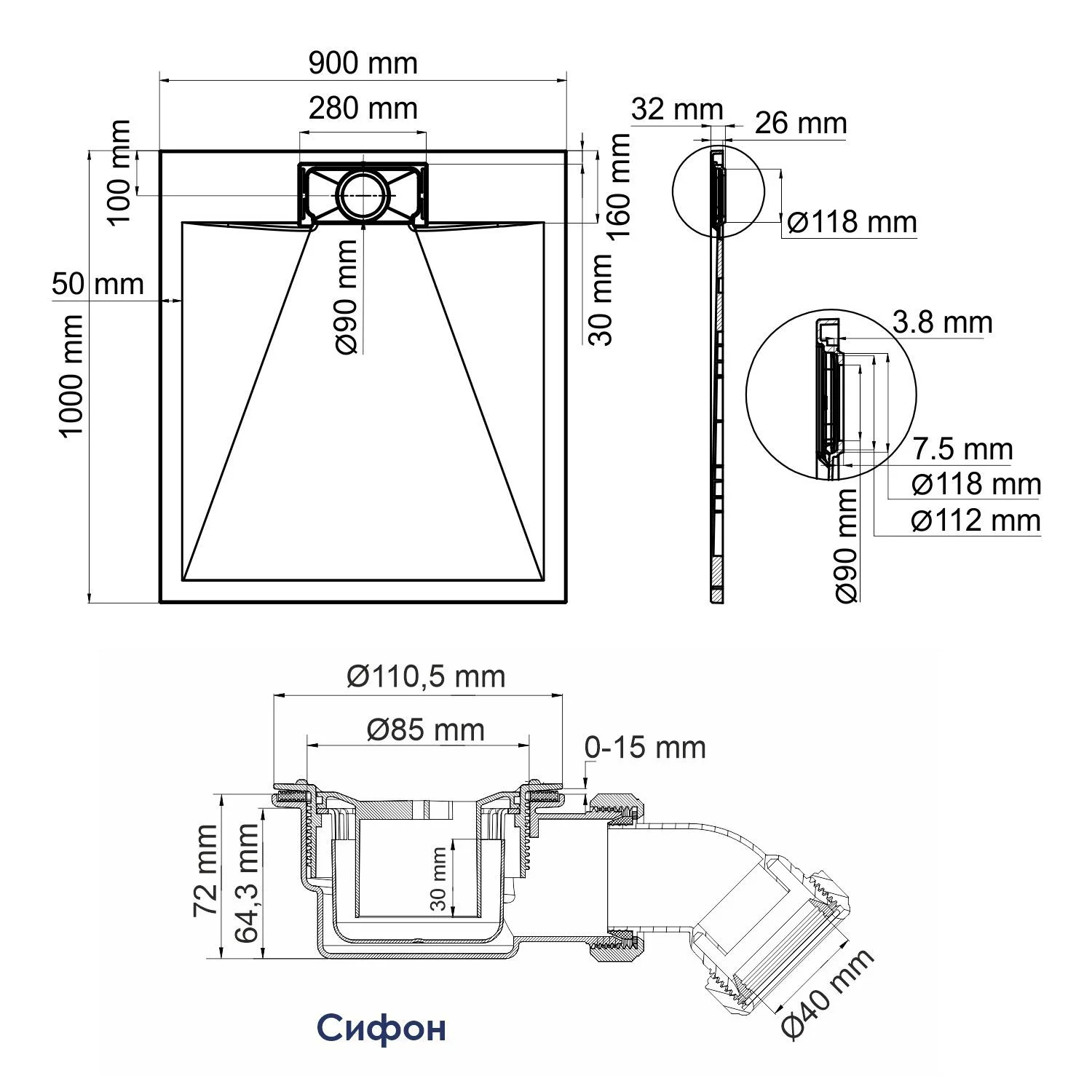 Диаметр слива канализации, мм