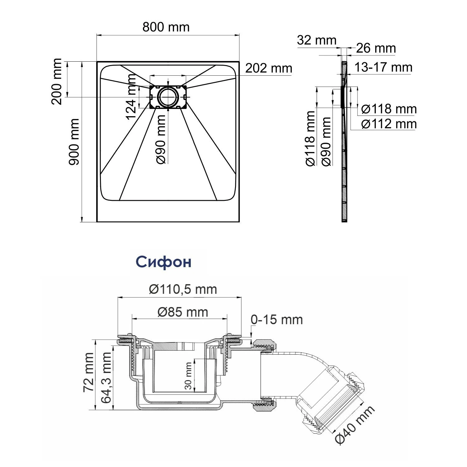 Диаметр слива канализации, мм