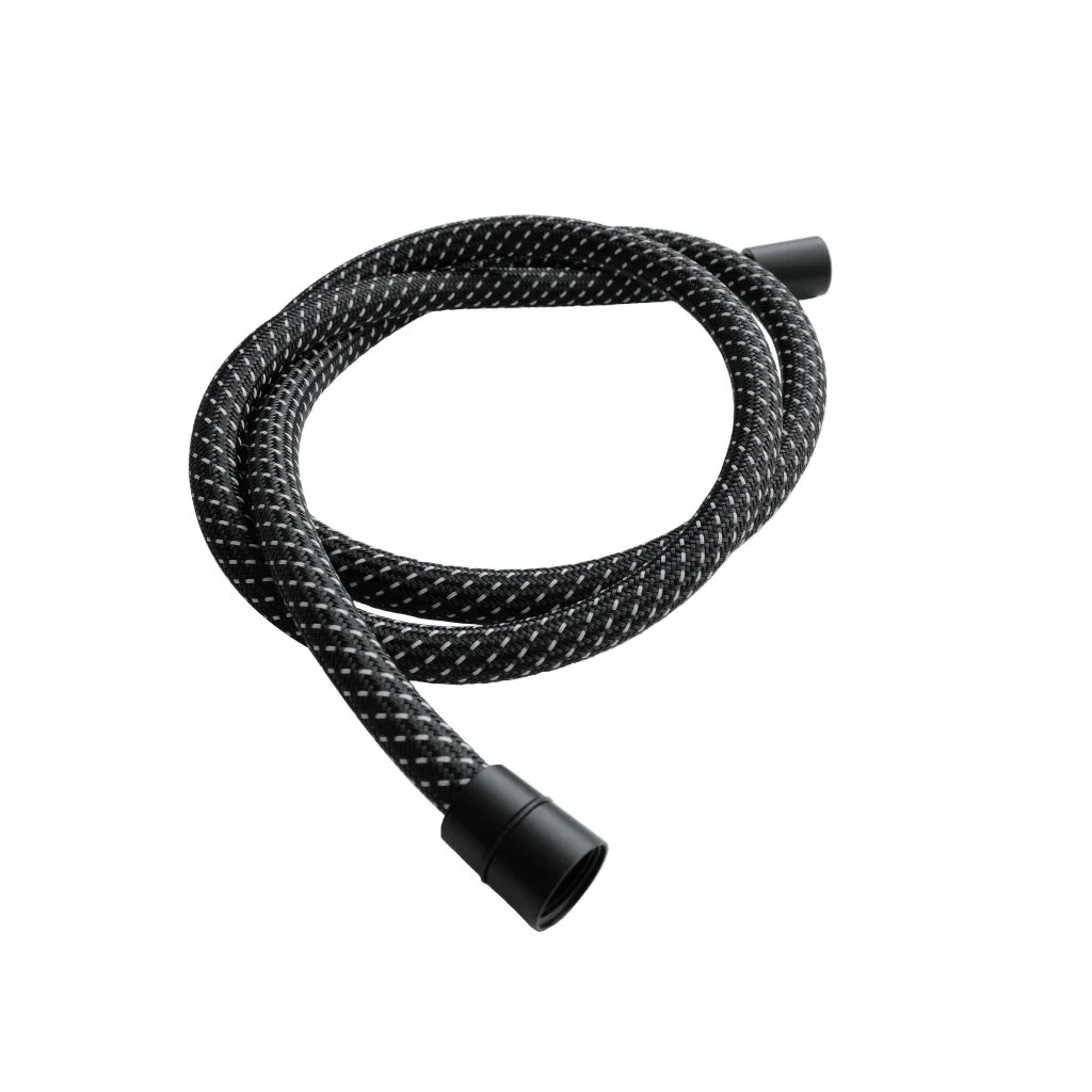 Душевой шланг AQUAme AQM1503MB ПВХ, 1500 мм, с латун конич гайкой и защитой от скруч, черный мат