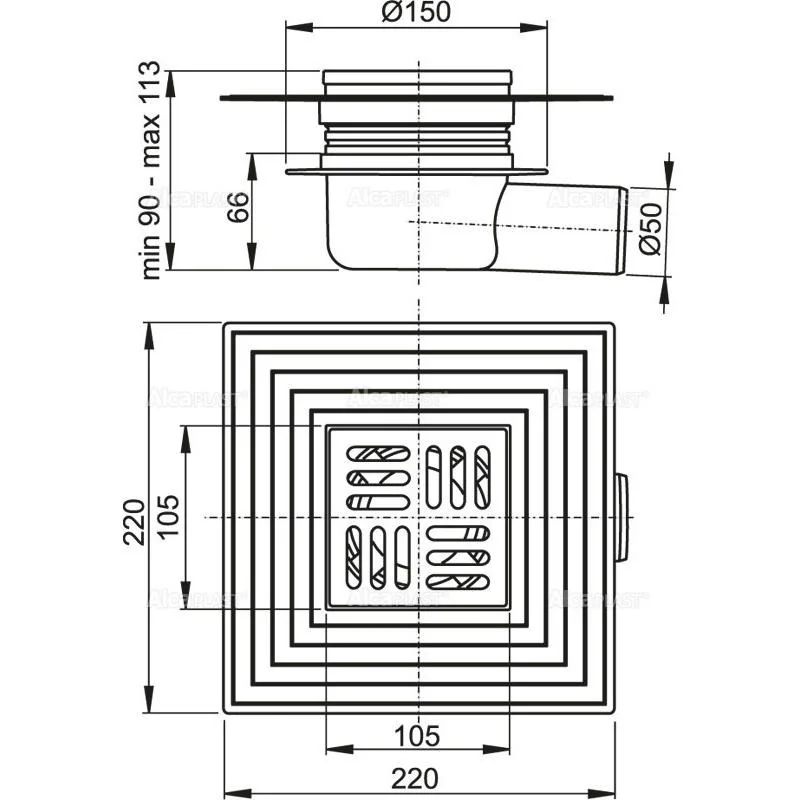 Вручную легко чистящийся сифон, вплоть до сточной трубы