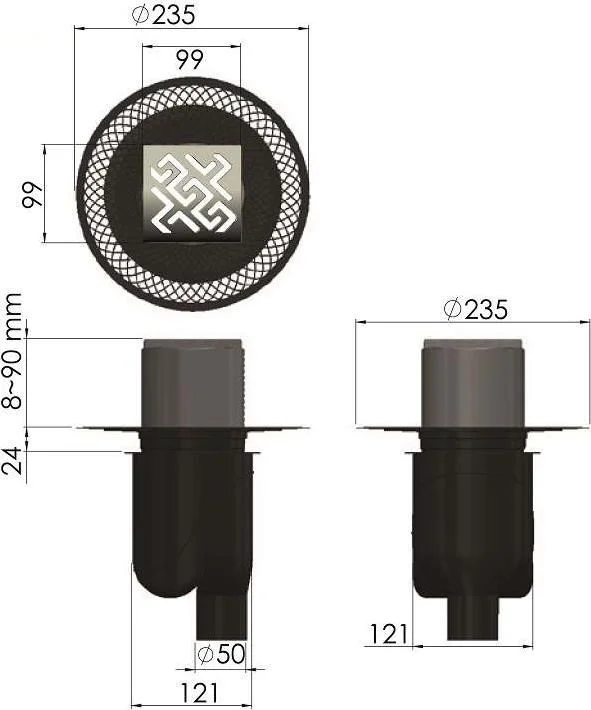 Душевой трап BERGES PLATZ Antik 100х100, бронза, S-сифон D50/105 H50 вертикальный 094060