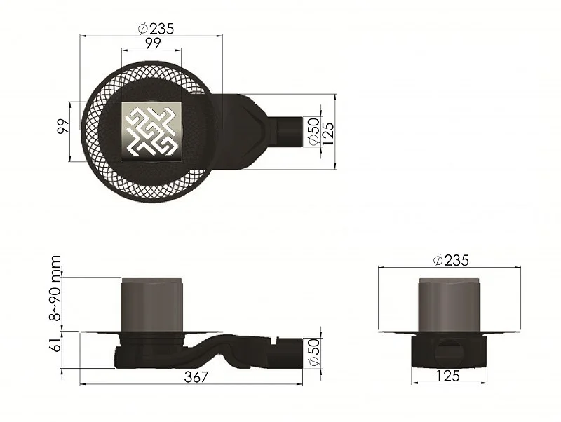 горизонтальный выпуск D50 H60, пропускная способность 42л/мин, монтаж 360°