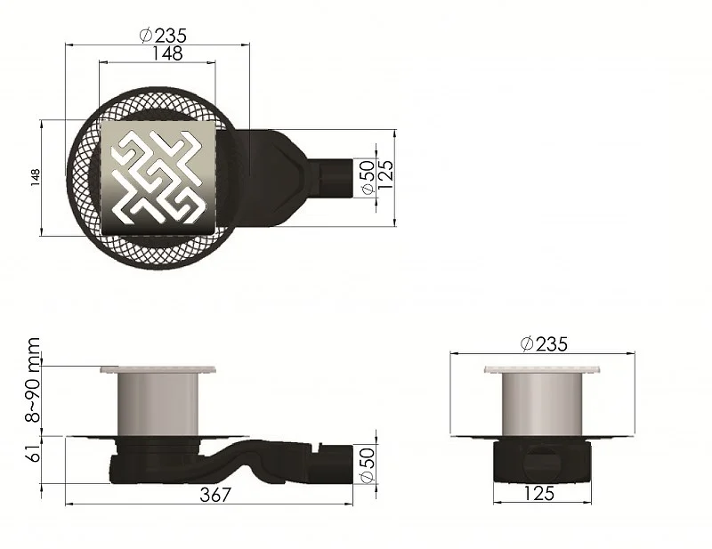 горизонтальный выпуск D50 H60, пропускная способность 42л/мин, монтаж 360°