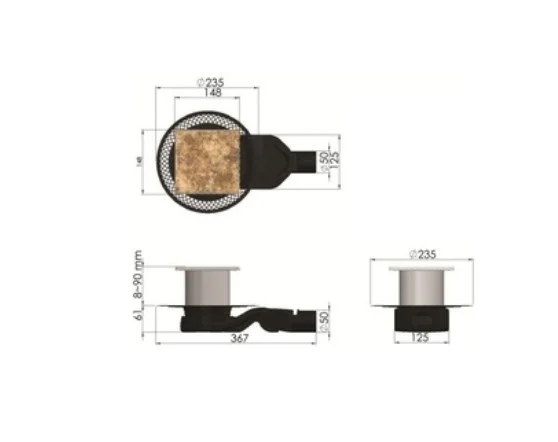 горизонтальный выпуск D50 H60, пропускная способность 42л/мин, монтаж 360°
